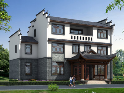 JL028三層中式徽派別墅圖紙外觀效果圖,新農(nóng)村徽派建筑房屋