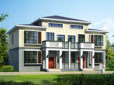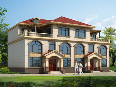 JL017歐式三層雙拼別墅設(shè)計(jì)圖外觀效果圖,鼎川建筑三層雙拼
