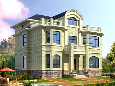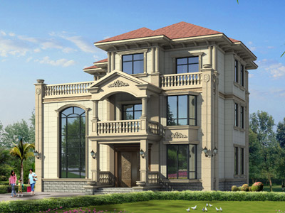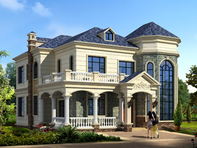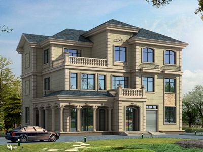 ZA008三層歐式別墅外觀效果圖,鼎川建筑三層別墅私人定制設