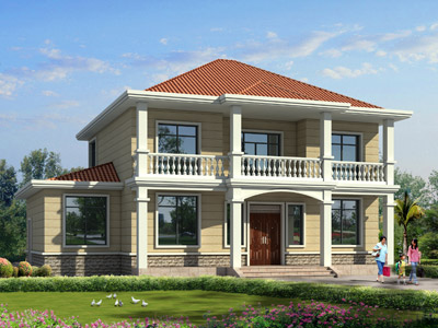 ZA015簡單的二層農村自建小別墅設計效果圖,鼎川建筑兩層房