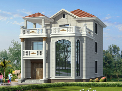 L0275三層帶露臺農村別墅設計外觀效果圖,農村三層歐式別墅