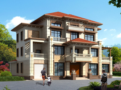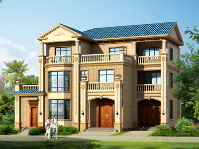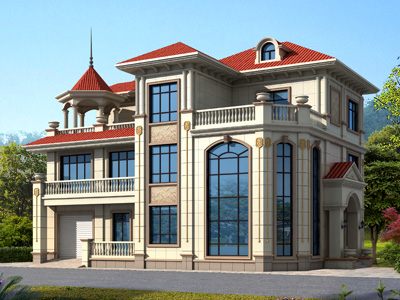 ZY035三層歐式別墅設計圖紙外觀效果圖,新農村自建別墅圖紙