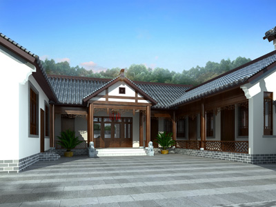 JL155農村一層中式三合院設計圖紙外觀效果圖,鼎川建筑一層