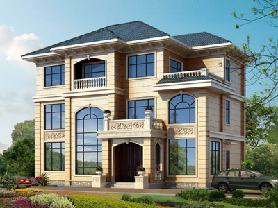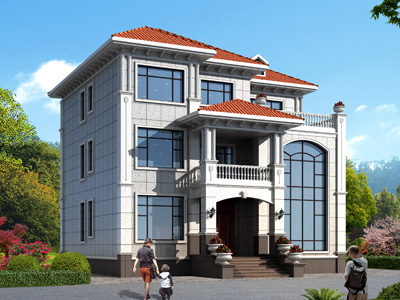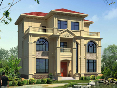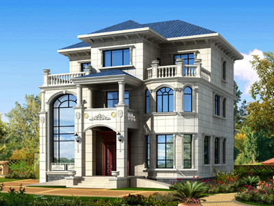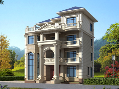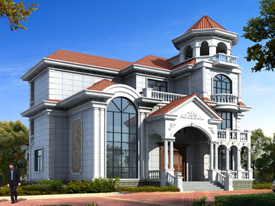 XC027大氣三層歐式別墅設計圖紙外觀效果圖,三層歐式別墅私