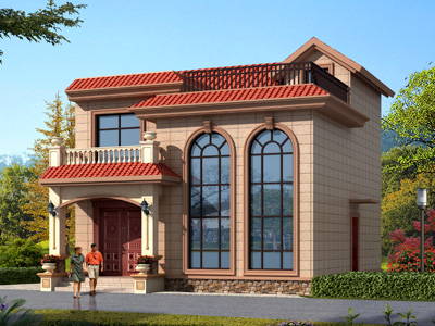 HC132新農村二層帶露臺自建別墅設計圖外觀效果圖,鄉村兩層