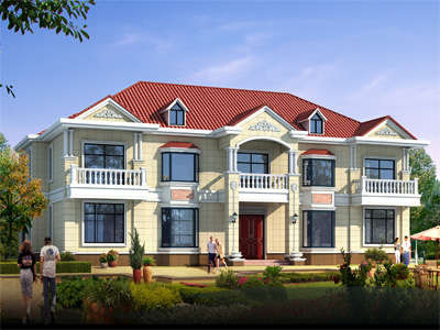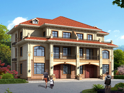L0361三層雙拼自建農村別墅設計圖紙外觀效果圖,新農村三層
