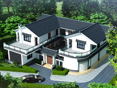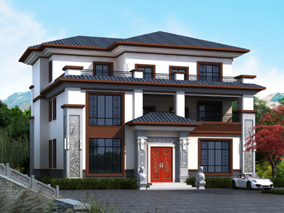 WQ020二層帶陽臺中式自建別墅設計圖效果圖,鼎川建筑新中式