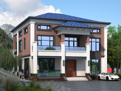 HC128復式三層帶露臺農村別墅設計圖紙外觀效果圖,新農村三