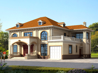 JL137漂亮的二層帶車庫歐式別墅設計圖紙外觀效果圖,鼎川建