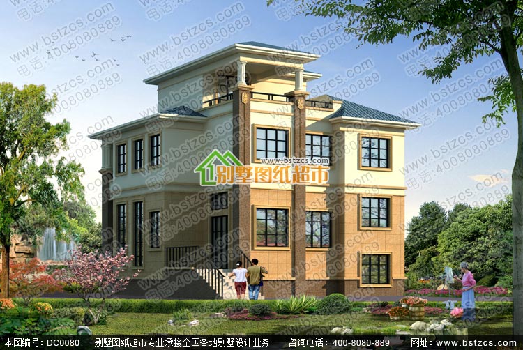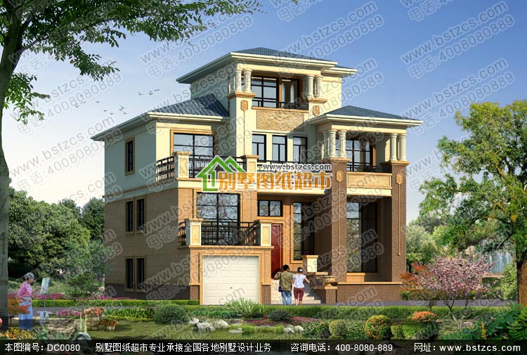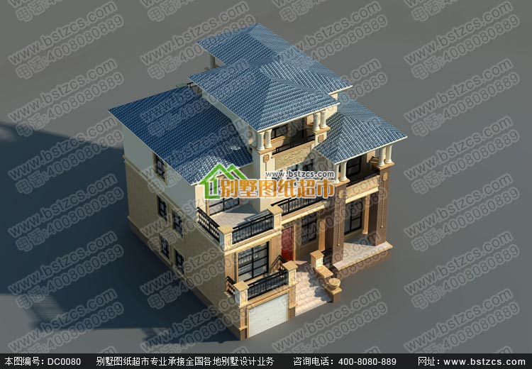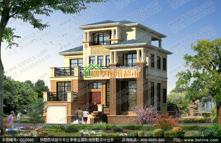 漂亮的三層復式帶車庫歐式別墅施工圖及效果圖_別墅圖紙超市,三