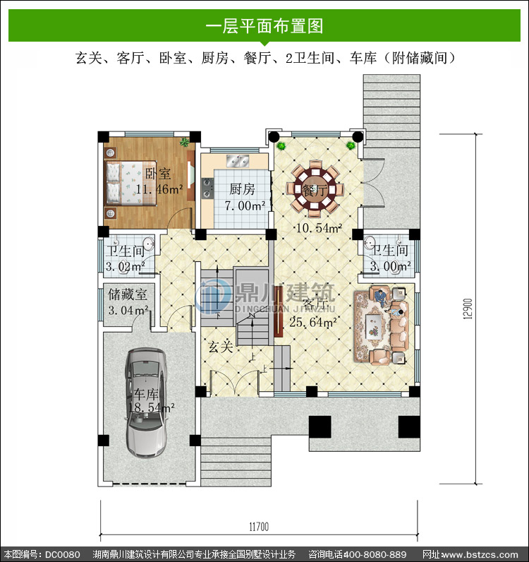 | 一 層: | 玄關、客廳、臥室、廚房、餐廳、2衛生間、車庫(附儲藏間) | |||
