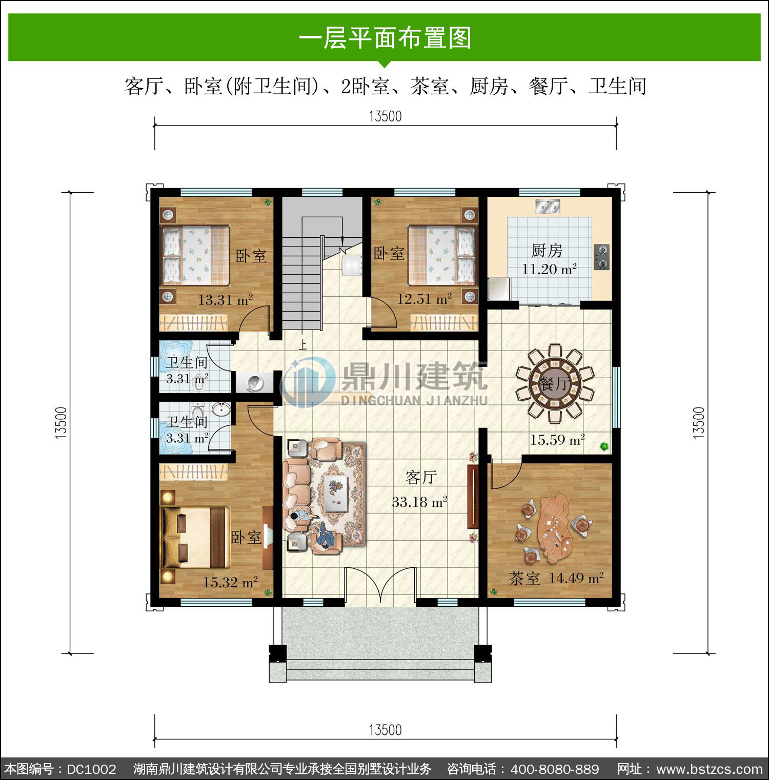 | 開間: 13.5米 | 進深: 13.5米 | 占地面積: 177.29平方米 | 建筑面積: 412.82平方米 |