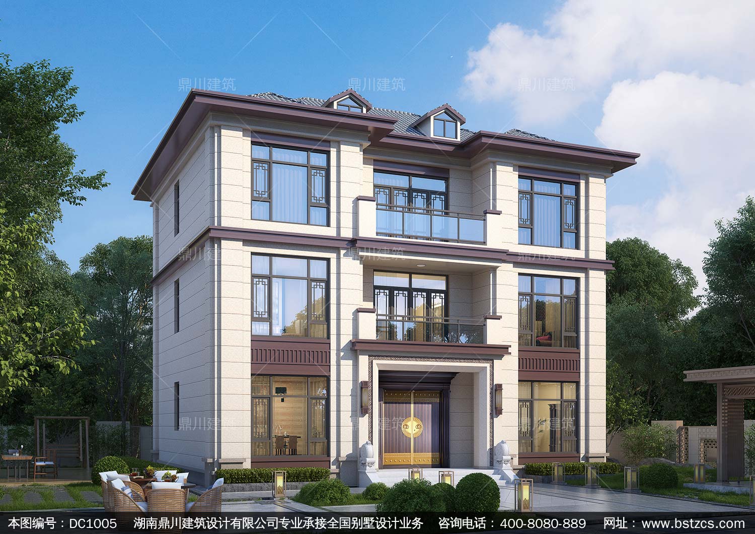 大氣三層新中式別墅設計圖紙及效果圖_農村自建別墅設計,鼎川建