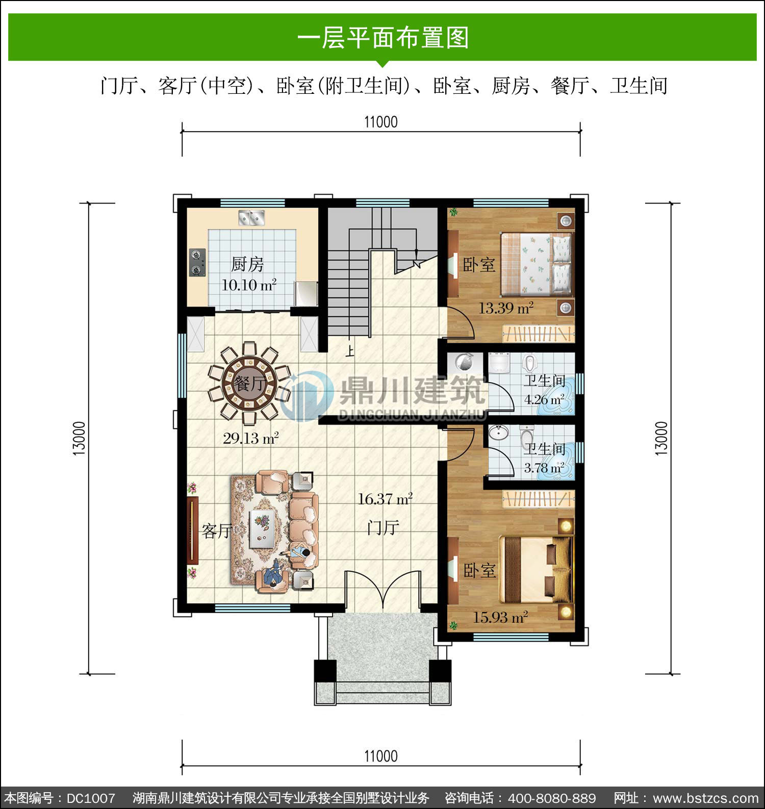 | 開間: 11米 | 進(jìn)深: 13米 | 占地面積: 138.71平方米 | 建筑面積: 378.39平方米 |