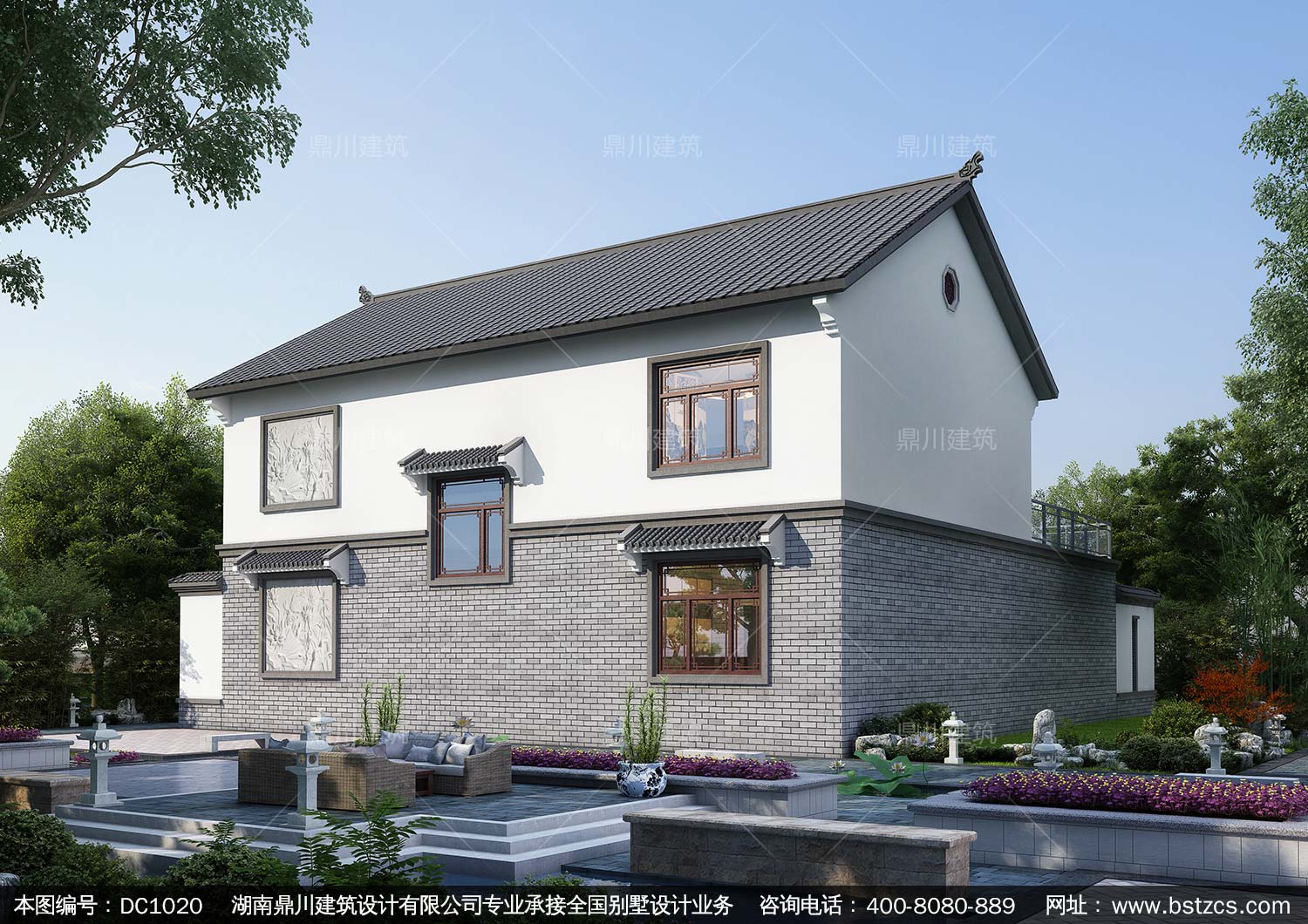 中式二層帶內(nèi)院別墅施工圖紙及效果圖_農(nóng)村自建別墅設(shè)計(jì),鼎川建筑