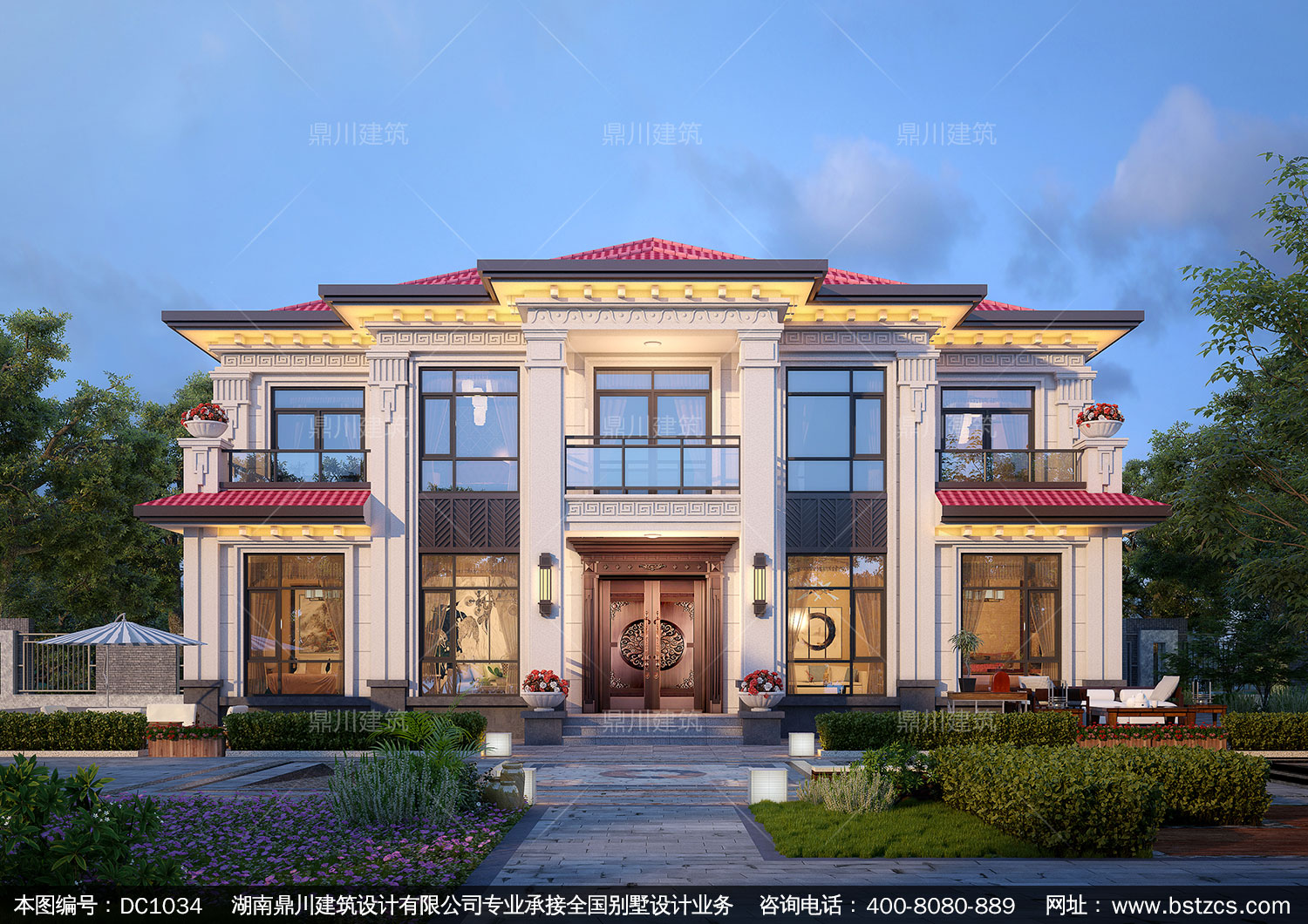 大氣新中式二層別墅施工圖紙及效果圖_農村自建別墅設計,鼎川建筑