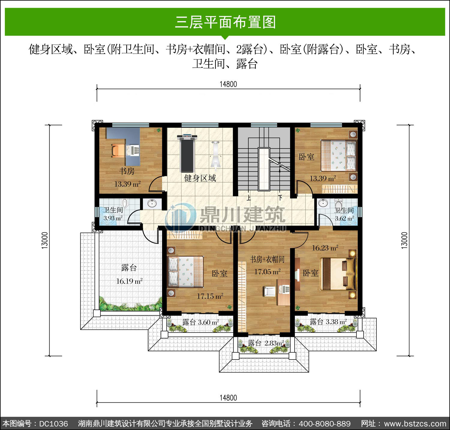 歐式三層帶露臺別墅設計施工圖紙及效果圖_新農村自建房設計,鼎