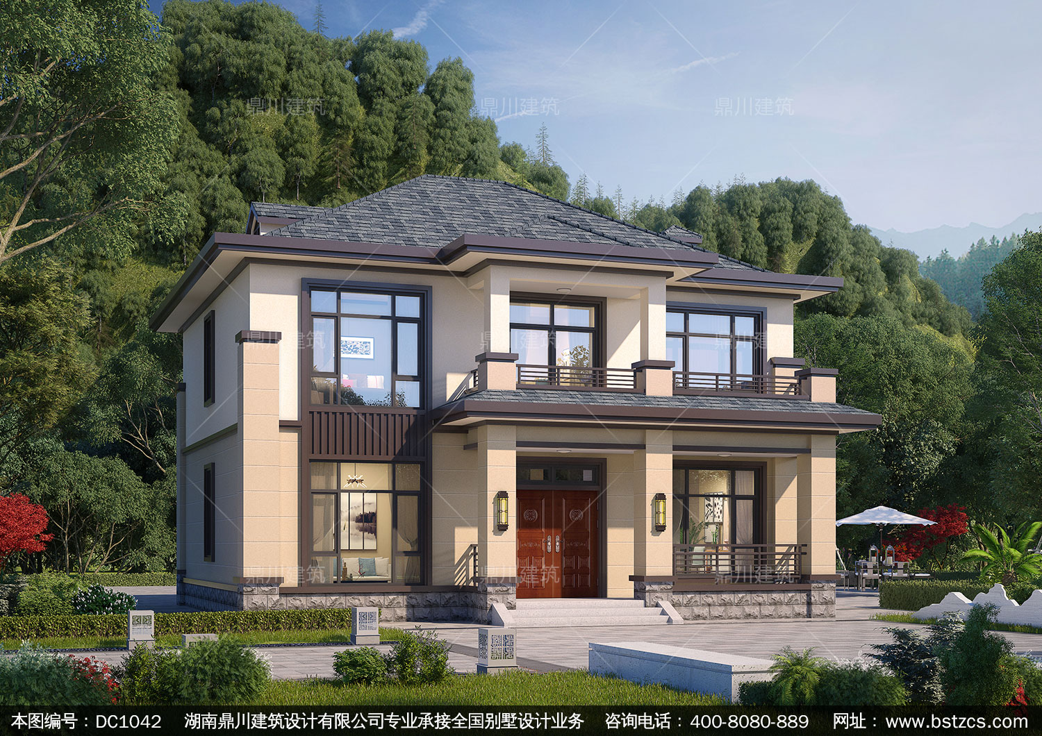 新中式二層小別墅圖紙及外觀效果圖_農村自建別墅設計,鼎川建筑
