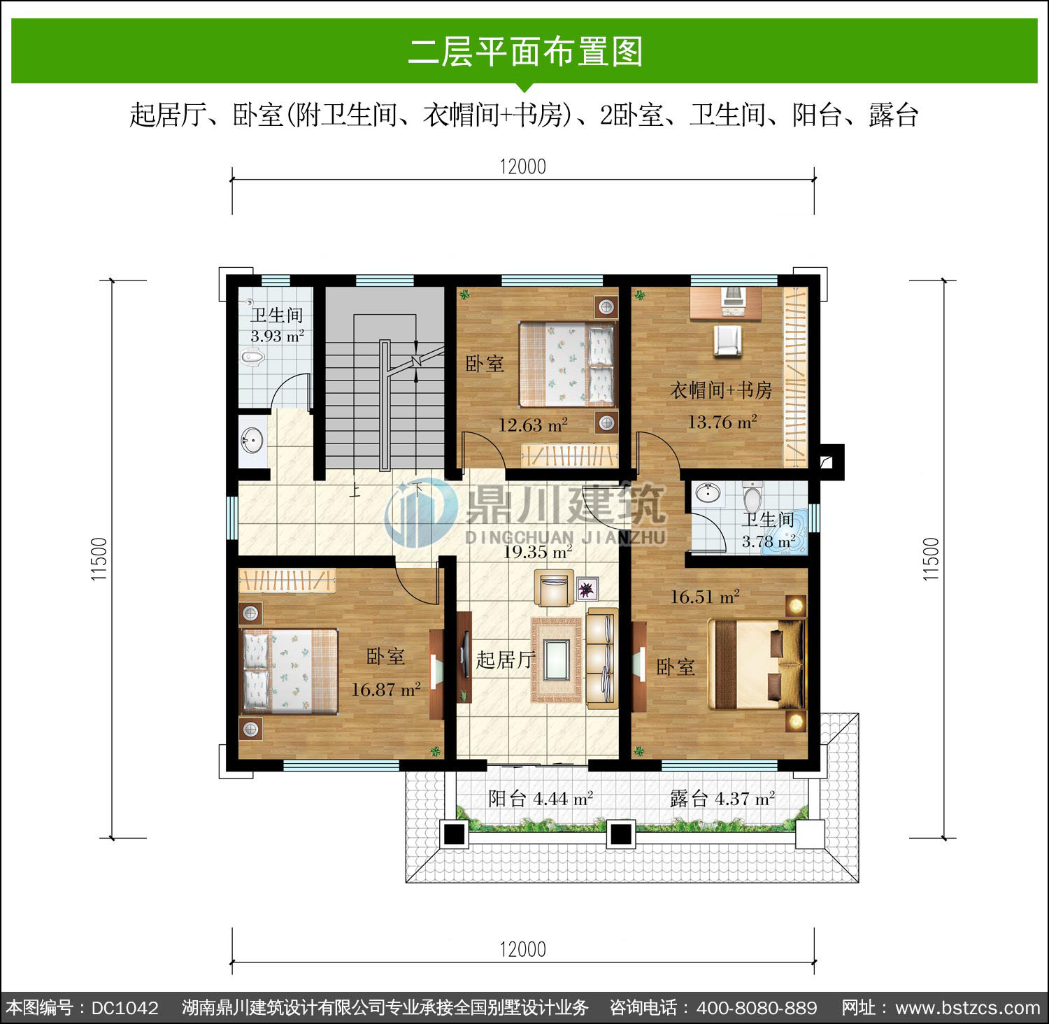 二層帶陽臺新中式別墅施工圖紙及效果圖_新農村自建房設計,鼎川