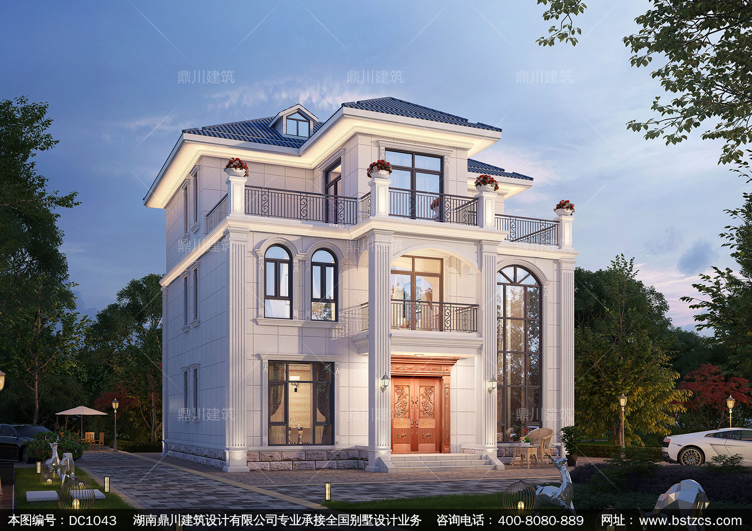 大氣歐式三層復式別墅圖紙及效果圖_農村自建別墅設計,鼎川建筑