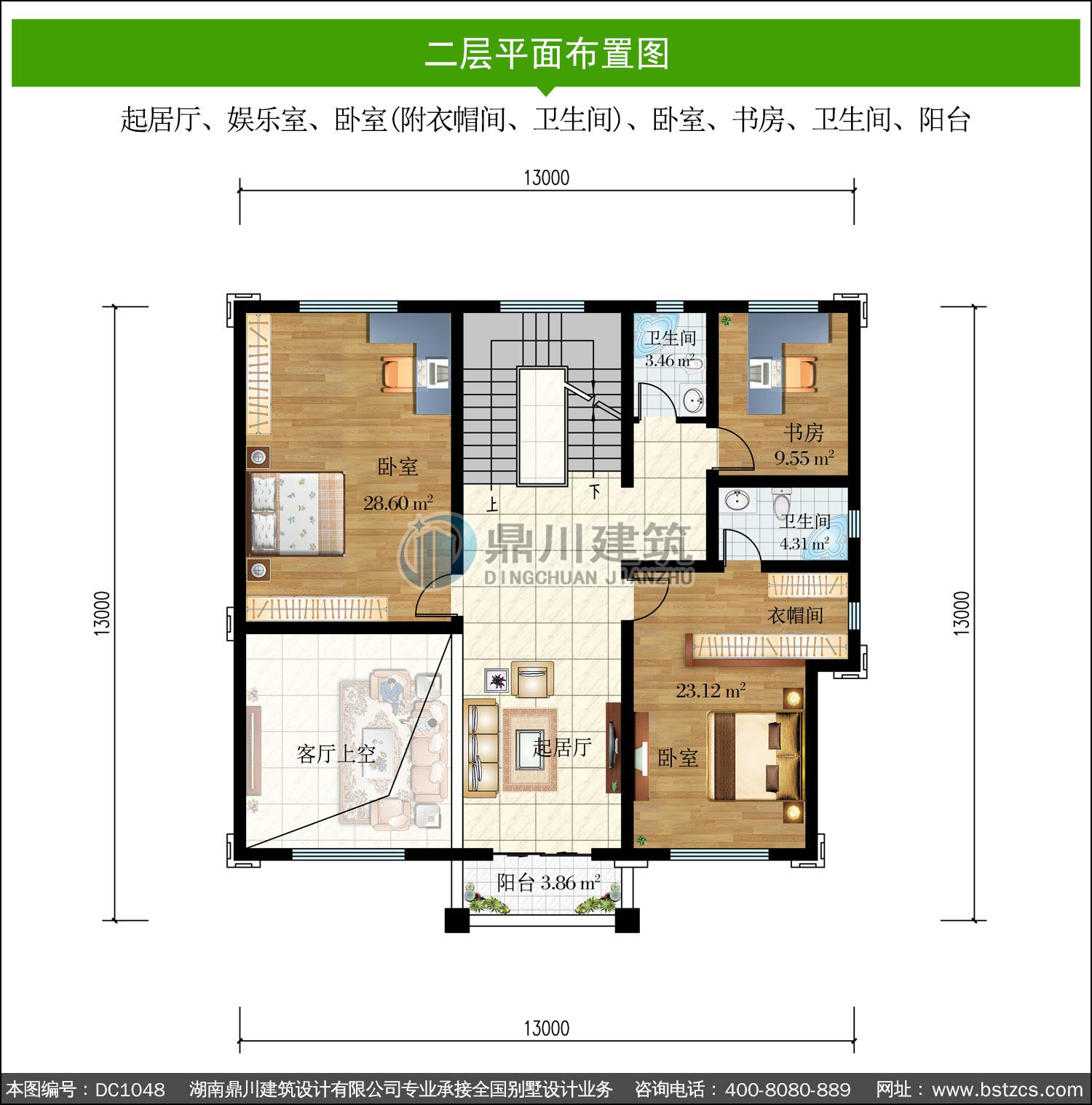 | 二 層: | 起居廳、娛樂室、臥室(附衣帽間、衛生間)、臥室、書房、衛生間、陽臺 | |||
