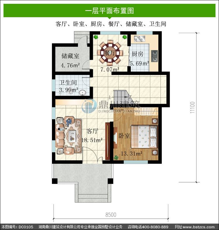| 一 層: | 客廳、臥室、廚房、餐廳、儲藏室、衛生間 | |||