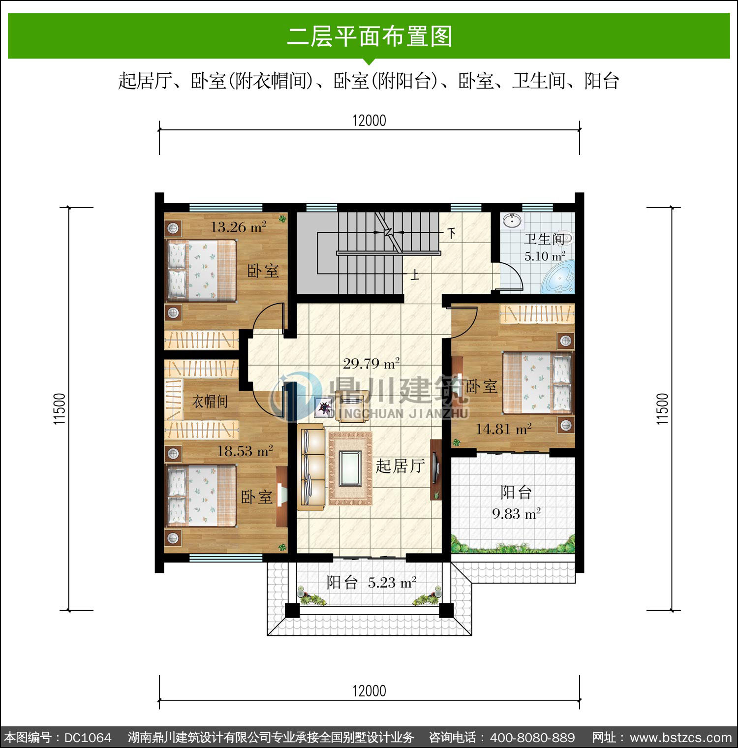 | 二 層: | 起居廳、臥室(附衣帽間)、臥室(附陽臺)、臥室、衛(wèi)生間、陽臺 | |||