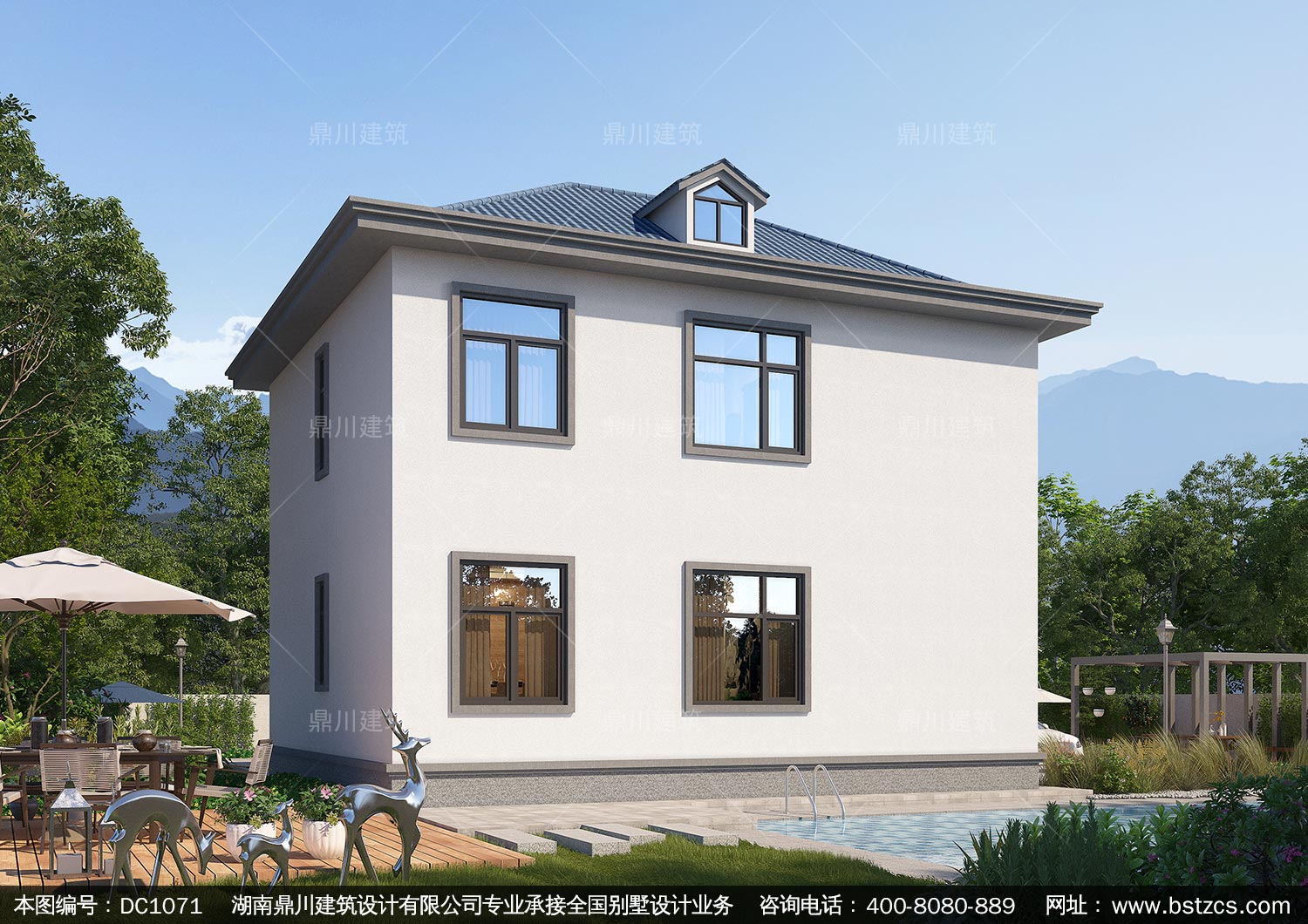 二層簡歐帶陽臺小別墅圖紙及效果圖_農村兩層自建房設計,鼎川建
