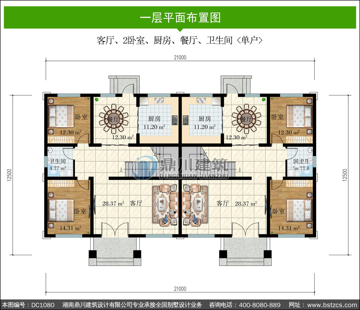 歐式二層雙拼別墅圖紙及效果圖_農(nóng)村兄弟自建雙拼別墅設(shè)計(jì),鼎川建筑