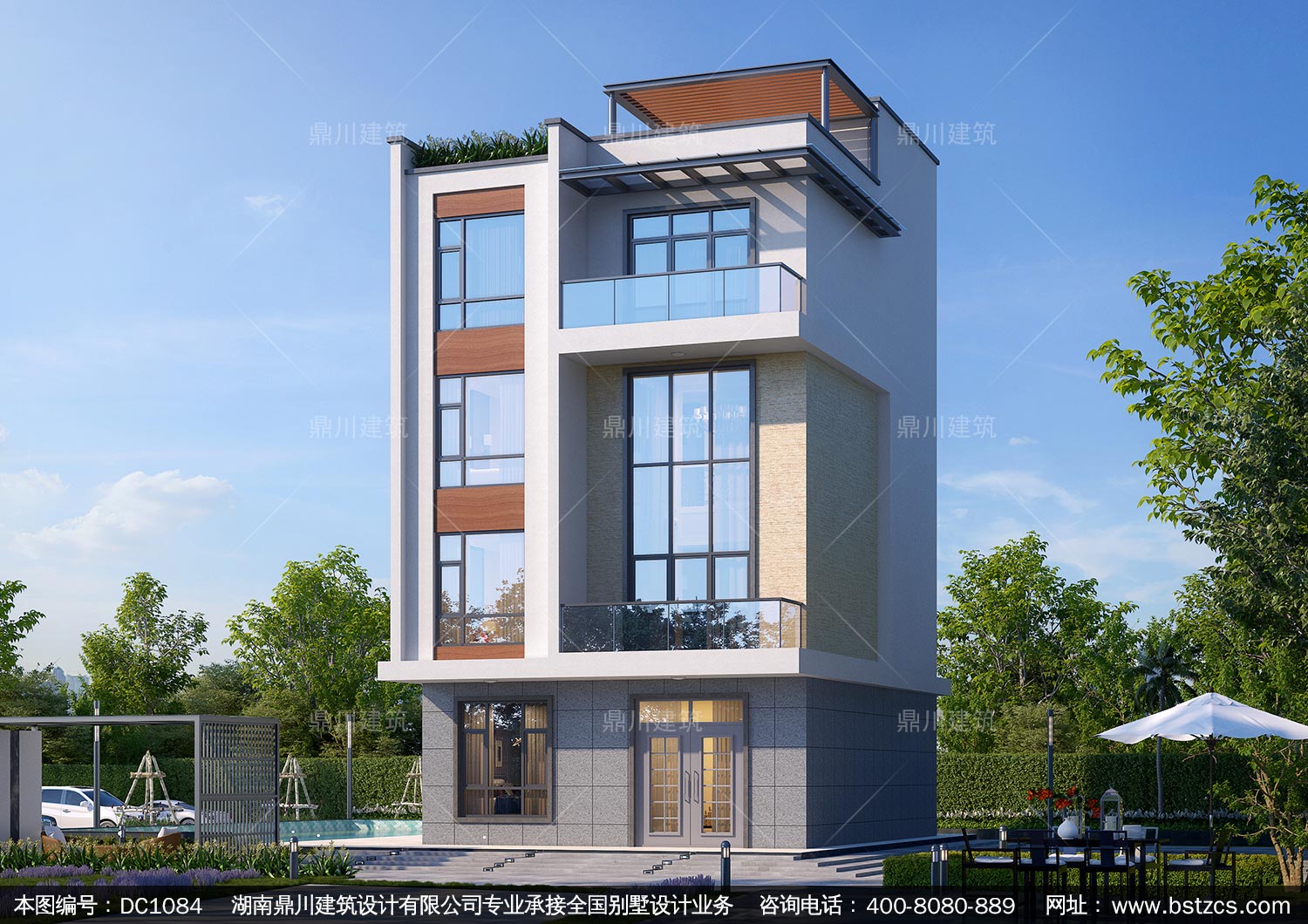 現代四層帶商鋪別墅圖紙及效果圖_新農村自建別墅設計,鼎川建筑