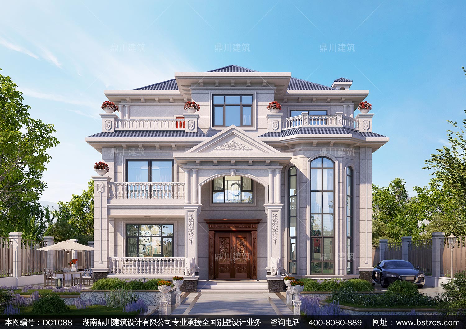 三層復(fù)式帶旋轉(zhuǎn)樓梯別墅圖紙及外觀效果圖_農(nóng)村自建別墅設(shè)計(jì),鼎川建筑