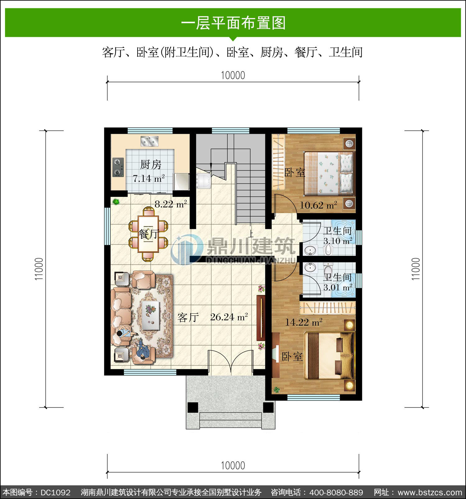 | 編號: DC1092 | 層數: 二層 | 結構形式: 磚混結構 | 主體造價: 24-30萬 |