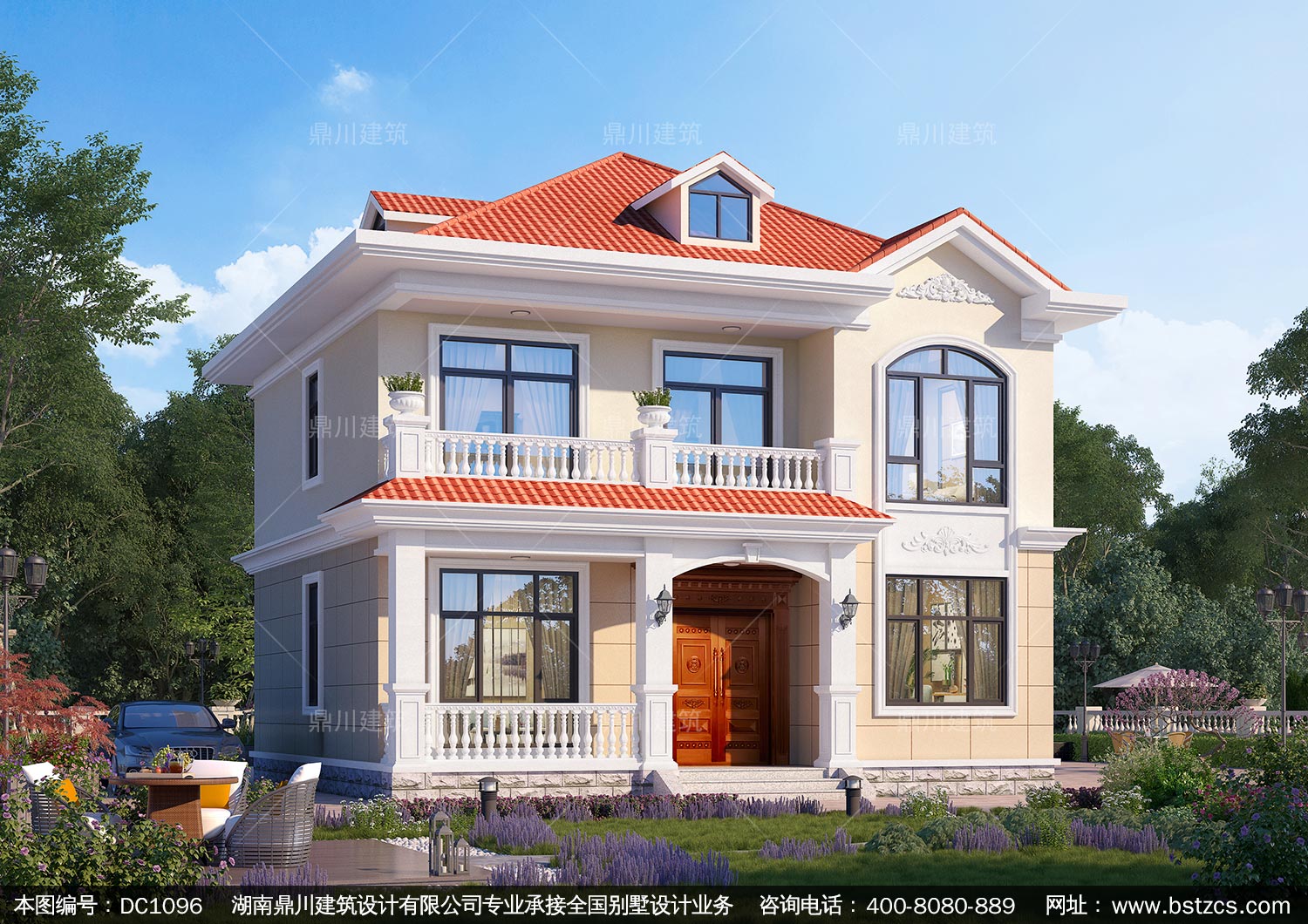 二層簡歐帶陽臺小別墅圖紙及效果圖_農村兩層自建房設計,鼎川建