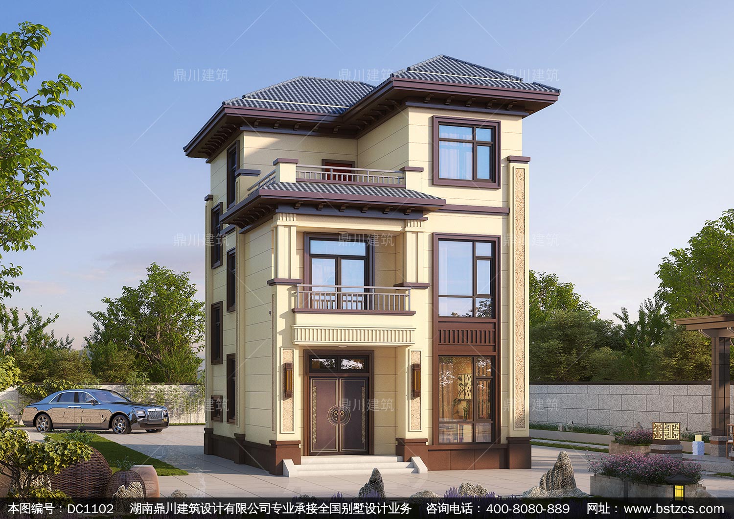 新中式三層小戶型別墅圖紙及效果圖_農村自建別墅設計,鼎川建筑
