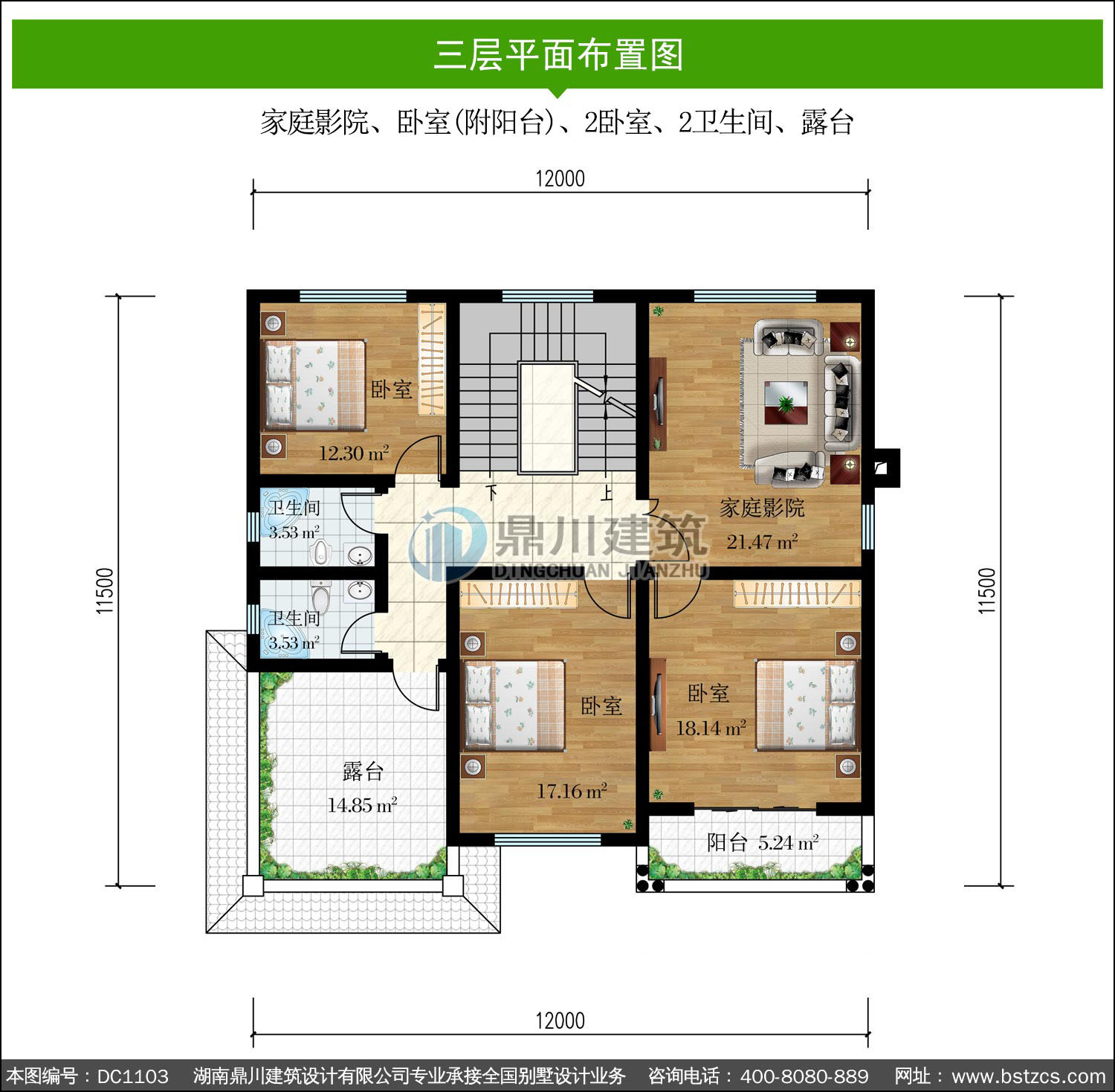 | 三 層: | 家庭影院、臥室(附陽臺)、2臥室、2衛(wèi)生間、露臺 | |||