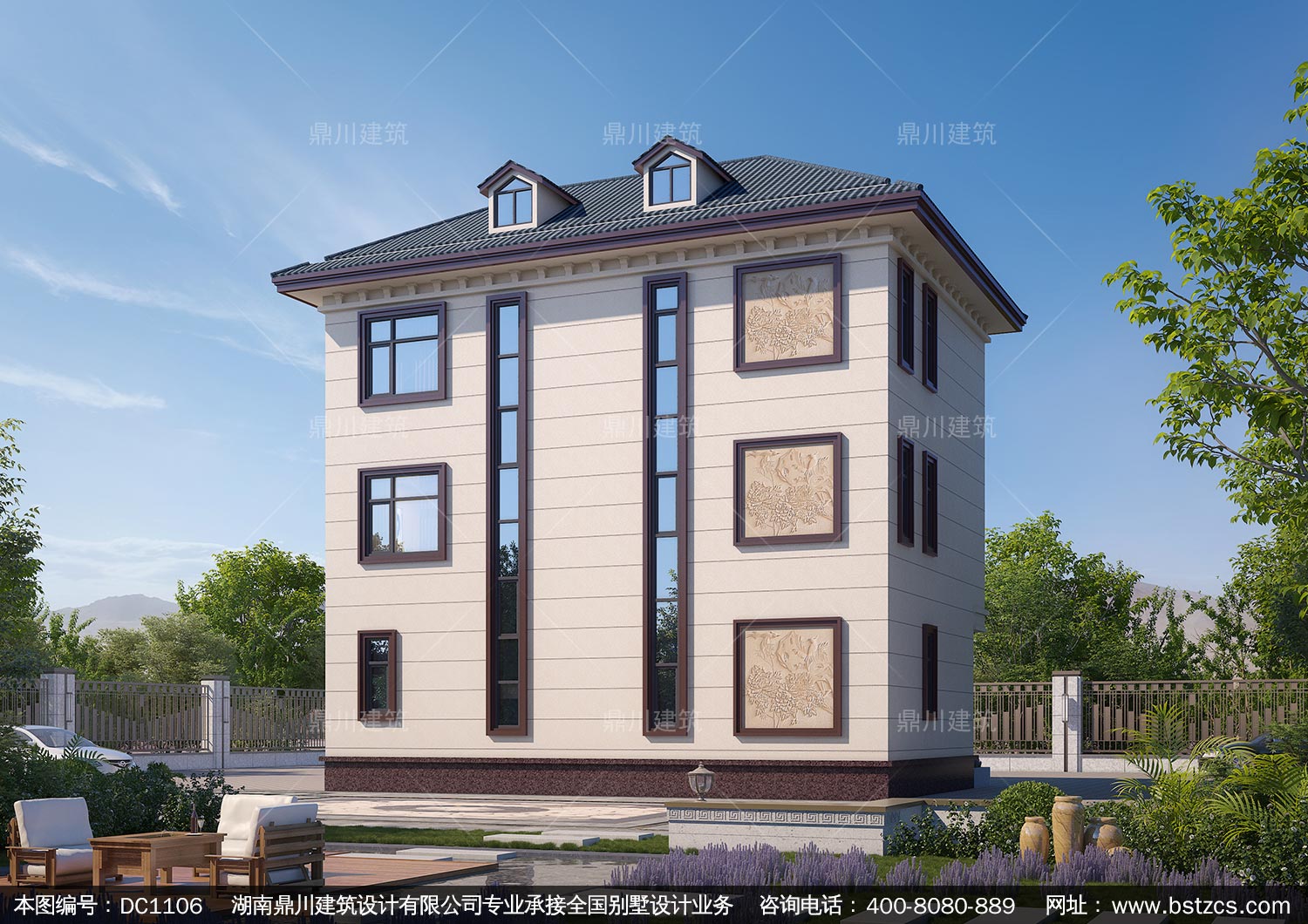 新中式三層帶陽臺別墅施工圖紙及效果圖_農村自建別墅設計,鼎川