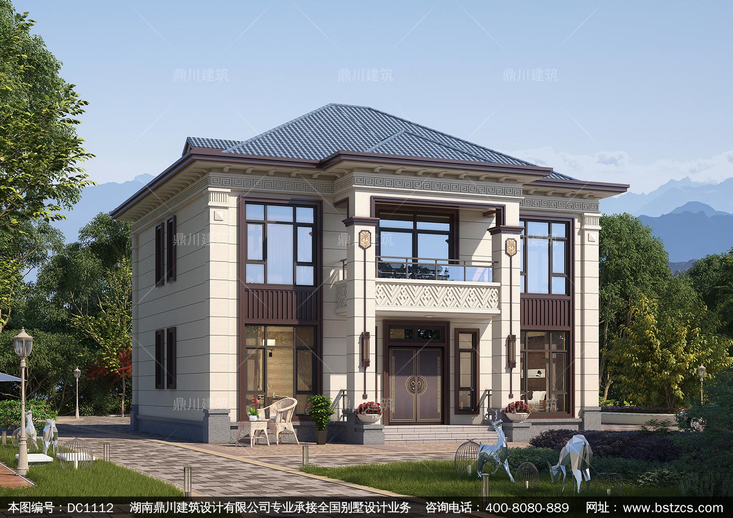 新中式二層別墅施工圖紙及外觀效果圖_農(nóng)村自建別墅設(shè)計(jì),鼎川建筑
