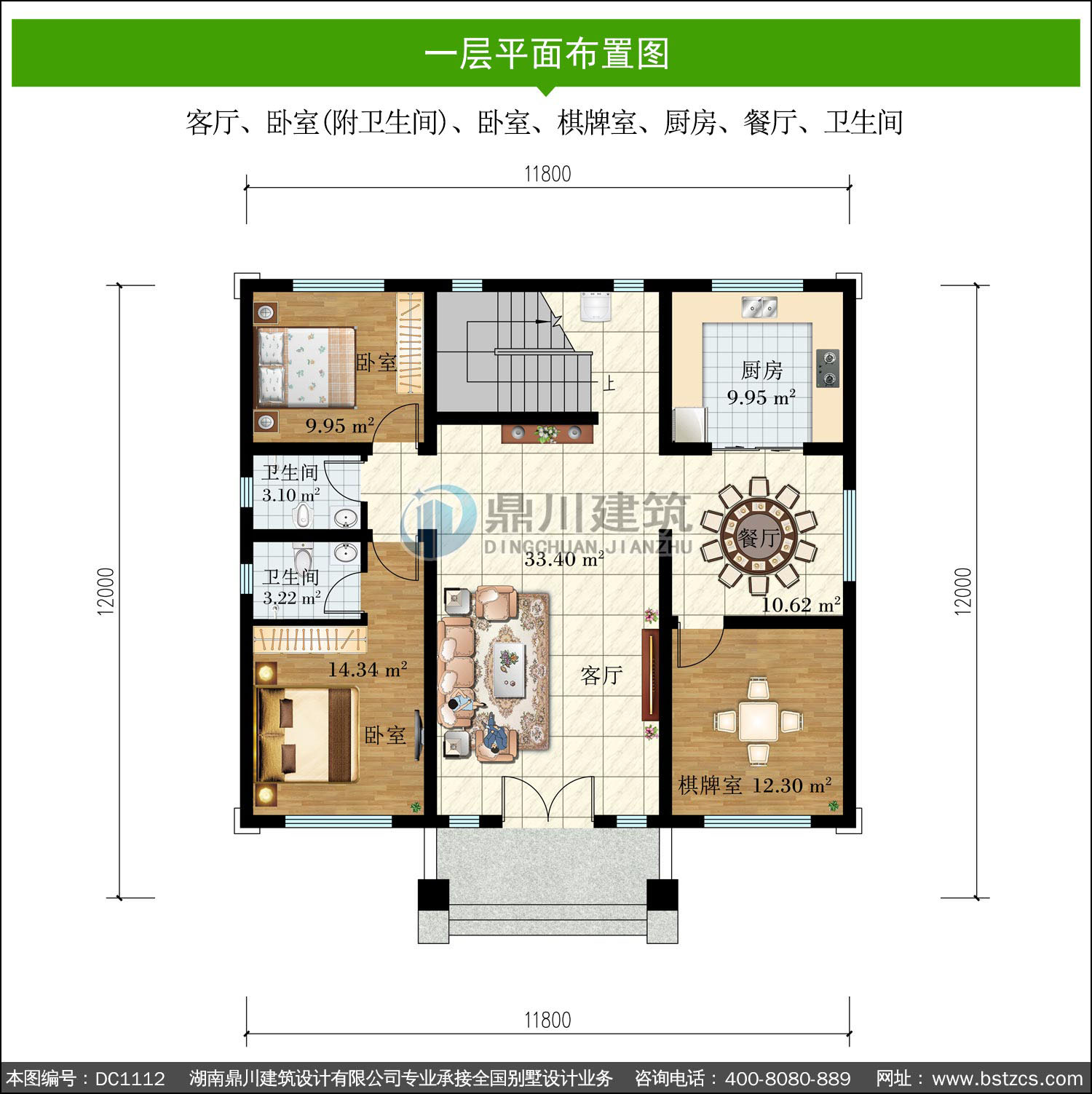 | 一 層: | 客廳、臥室(附衛(wèi)生間)、臥室、棋牌室、廚房、餐廳、衛(wèi)生間 | |||