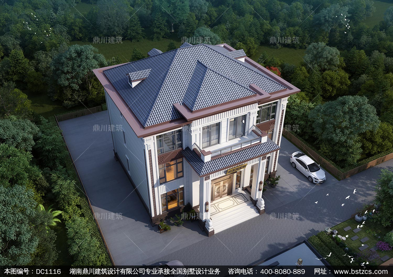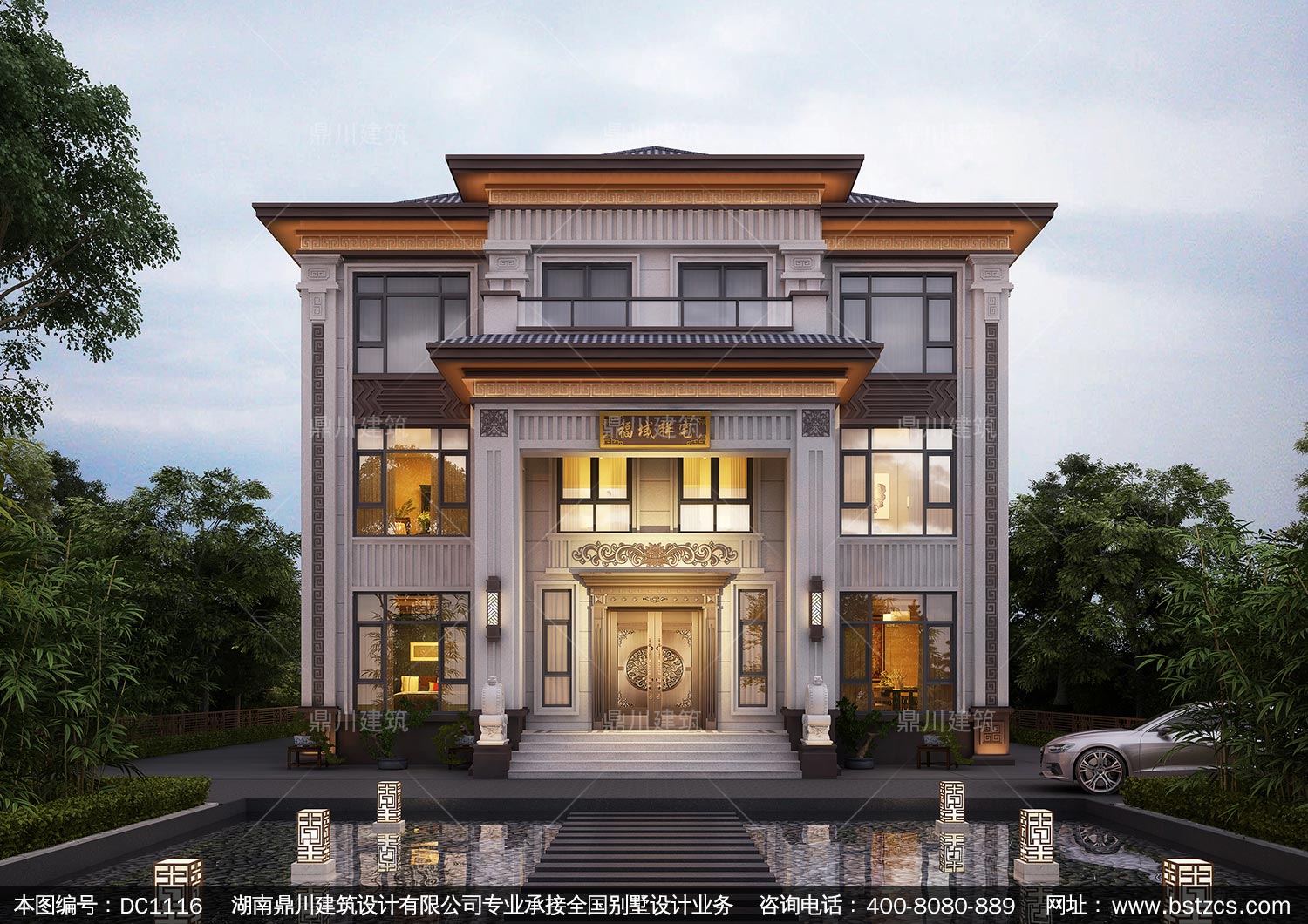 大氣三層新中式別墅設(shè)計圖紙及效果圖_農(nóng)村自建別墅設(shè)計,鼎川建筑