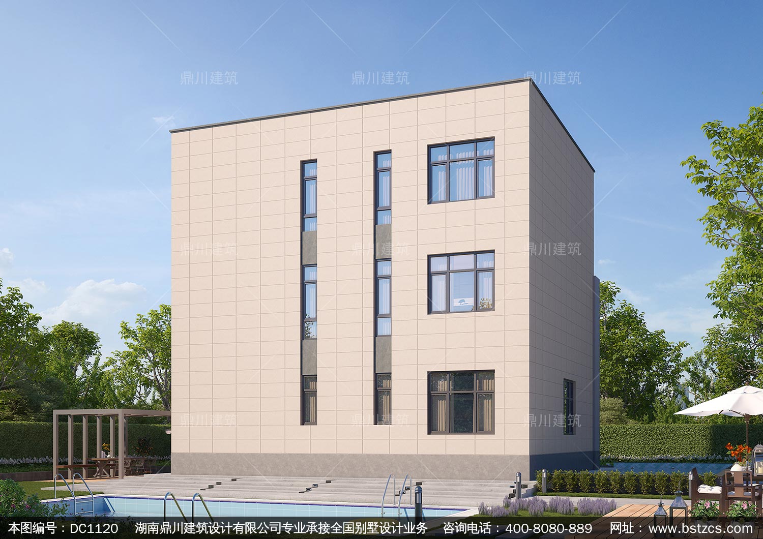 現代三層平屋頂別墅設計圖紙及效果圖_新農村自建別墅,鼎川建筑