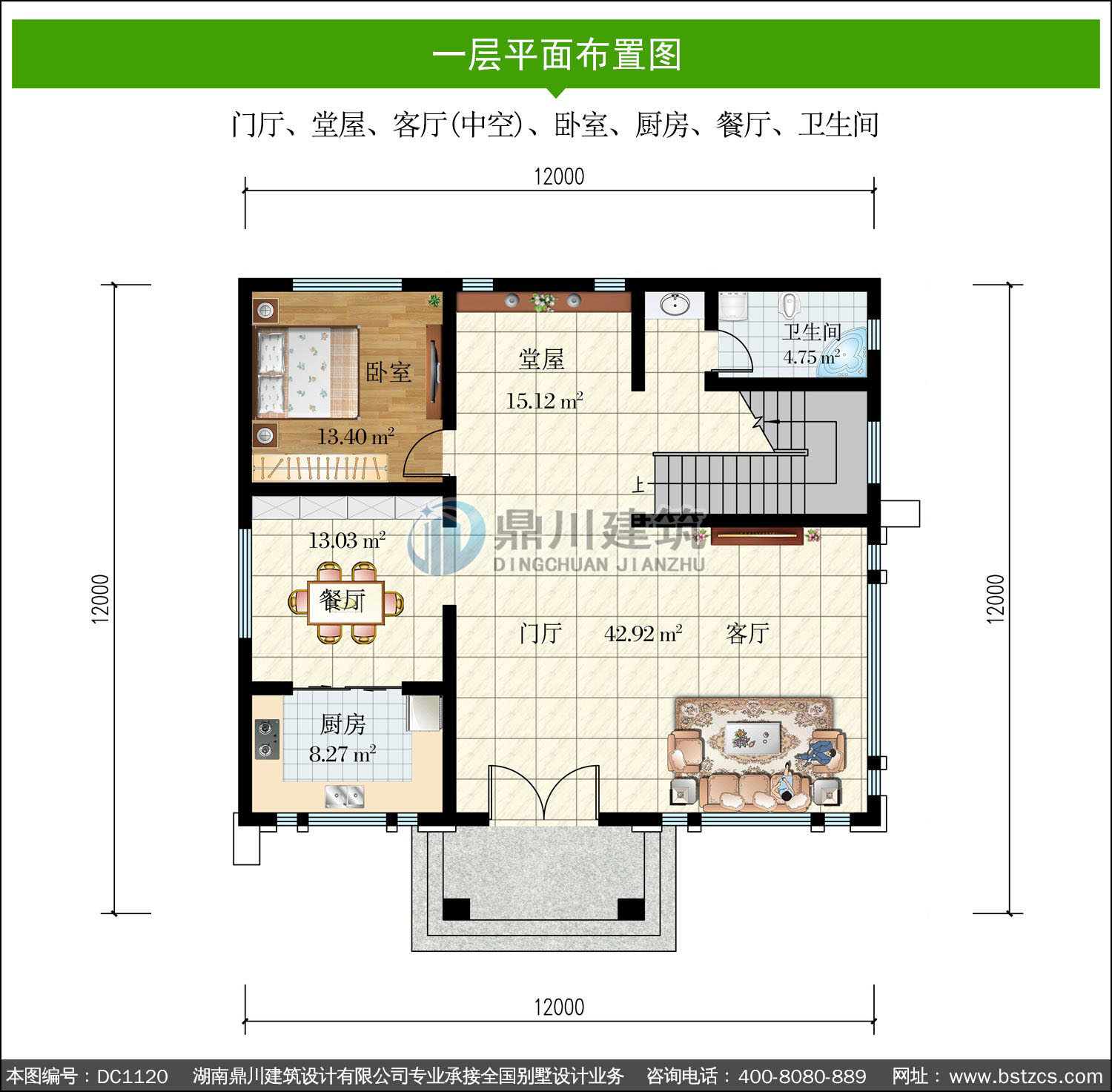 | 一 層: | 門廳、堂屋、客廳(中空)、臥室、廚房、餐廳、衛生間 | |||