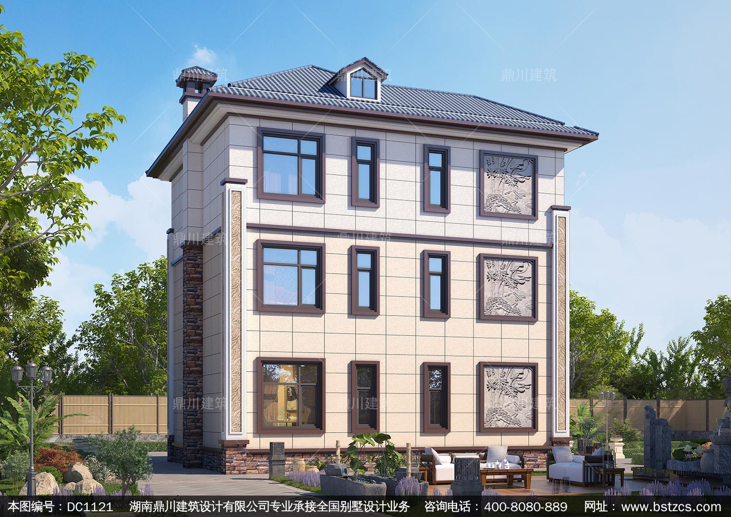三層新中式別墅全套圖紙及效果圖_新農村自建別墅設計,鼎川建筑