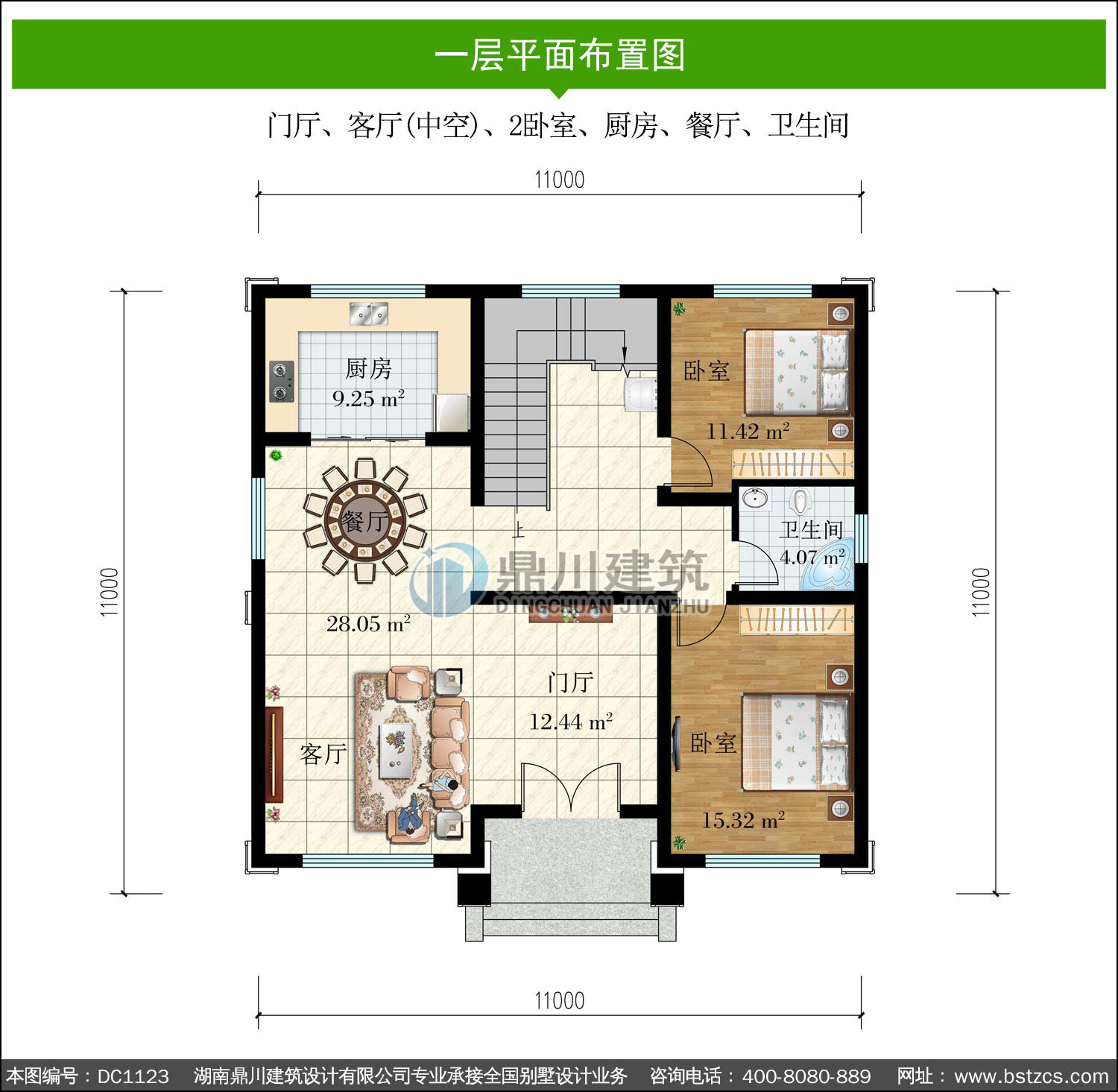 | 開(kāi)間: 11米 | 進(jìn)深: 11米 | 占地面積: 122.40平方米 | 建筑面積: 228.16平方米 |