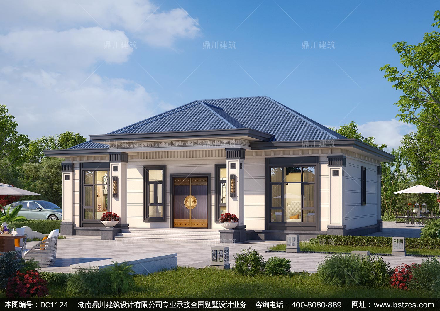 新中式一層別墅施工圖紙及外觀效果圖_農(nóng)村自建房設(shè)計,鼎川建筑