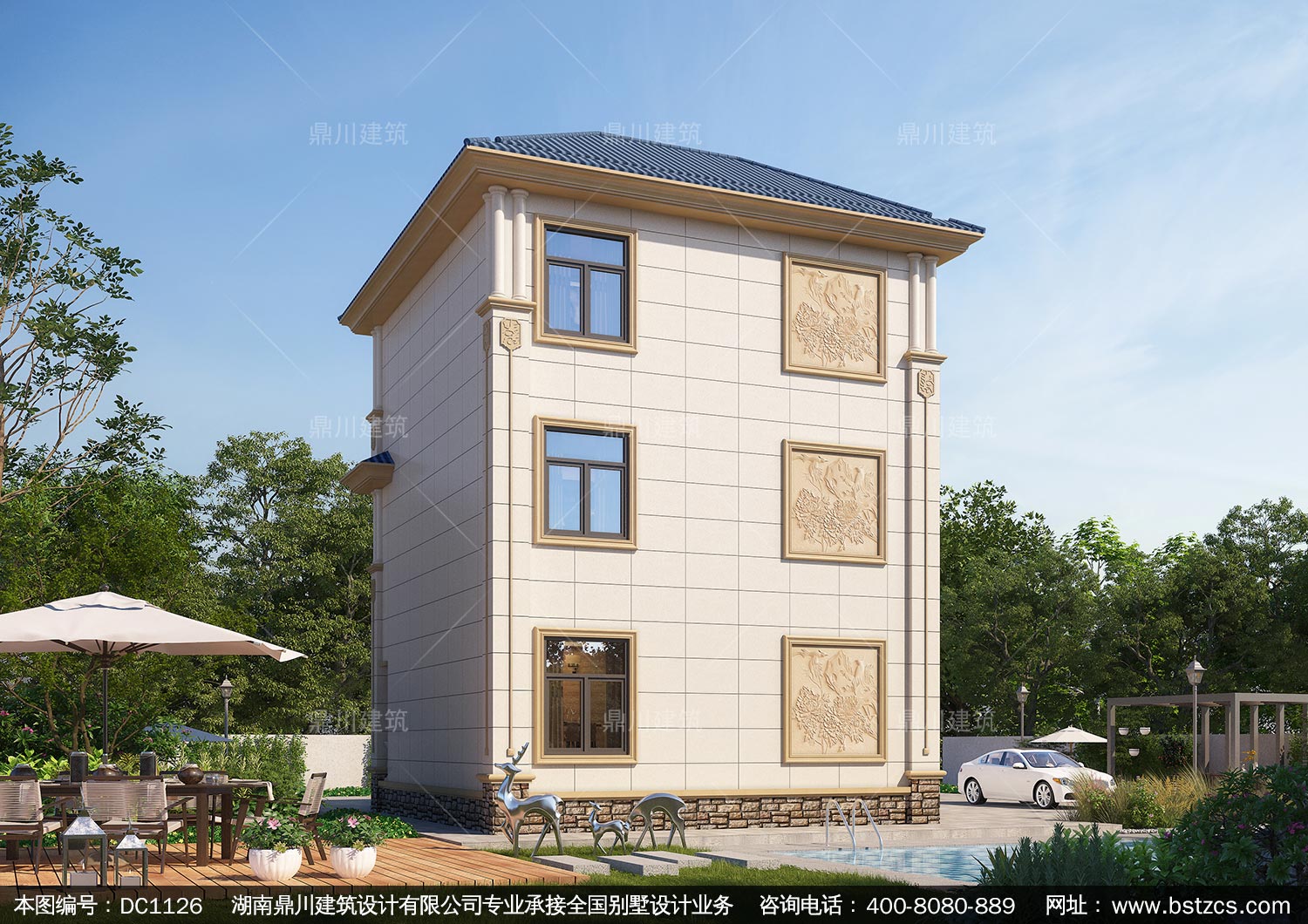 三層簡歐帶露臺小戶型別墅圖紙及效果圖_農村自建房設計,鼎川建筑