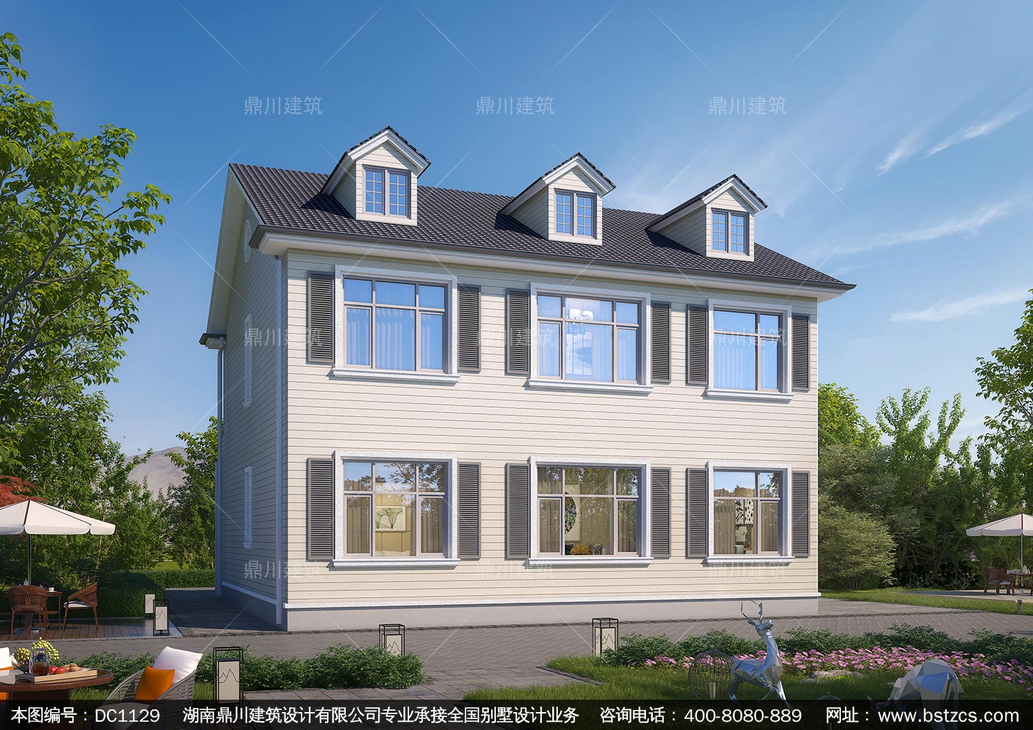 二層美式鄉(xiāng)村別墅圖紙及外觀效果圖_新農村自建別墅設計,鼎川建
