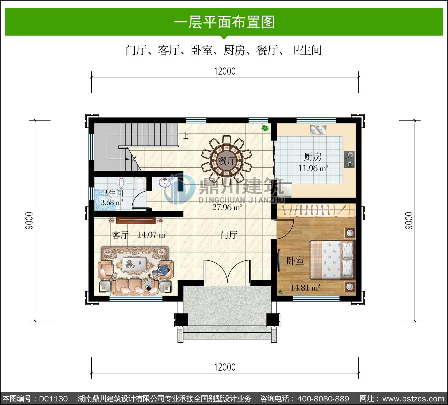 | 一 層: | 門廳、客廳、臥室、廚房、餐廳、衛生間 | |||