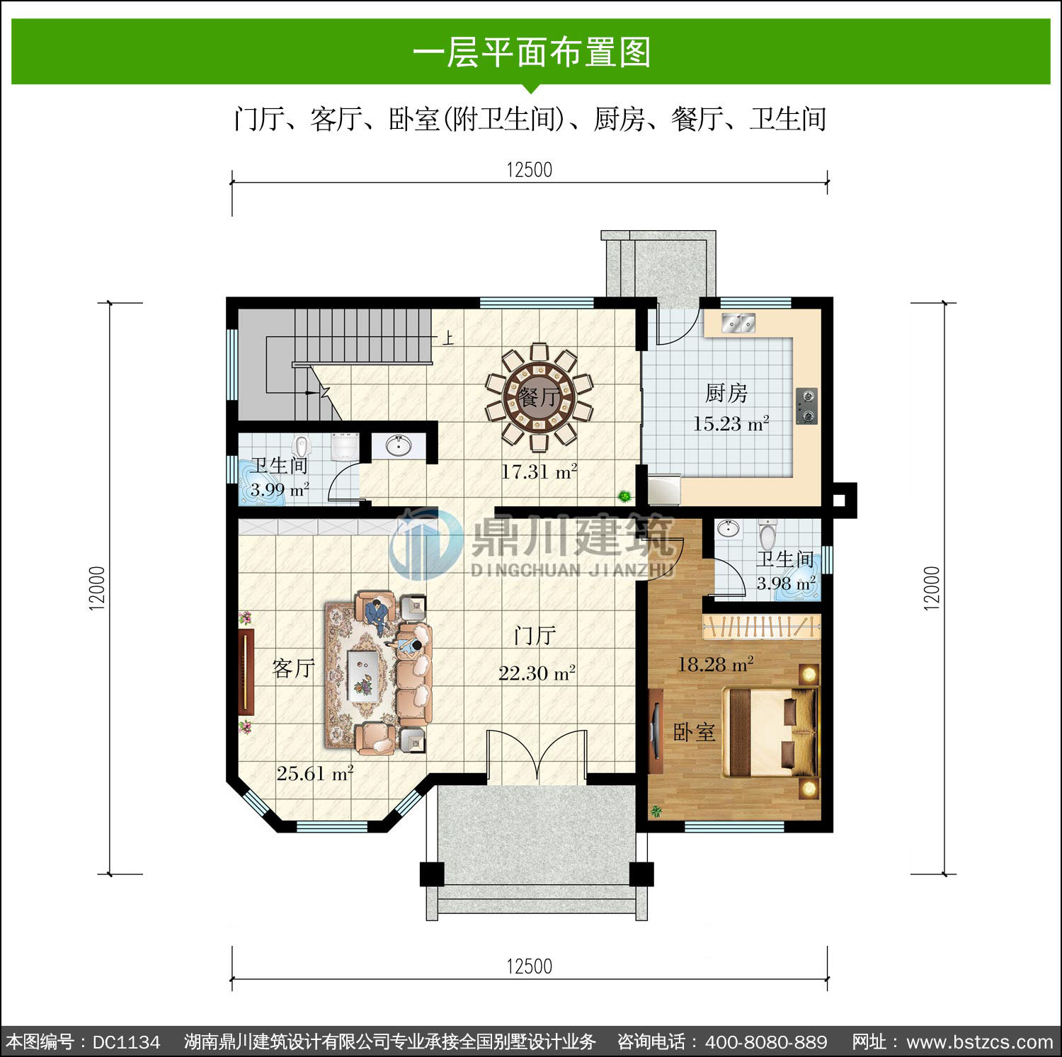 | 一 層: | 門廳、客廳、臥室(附衛生間)、廚房、餐廳、衛生間 | |||