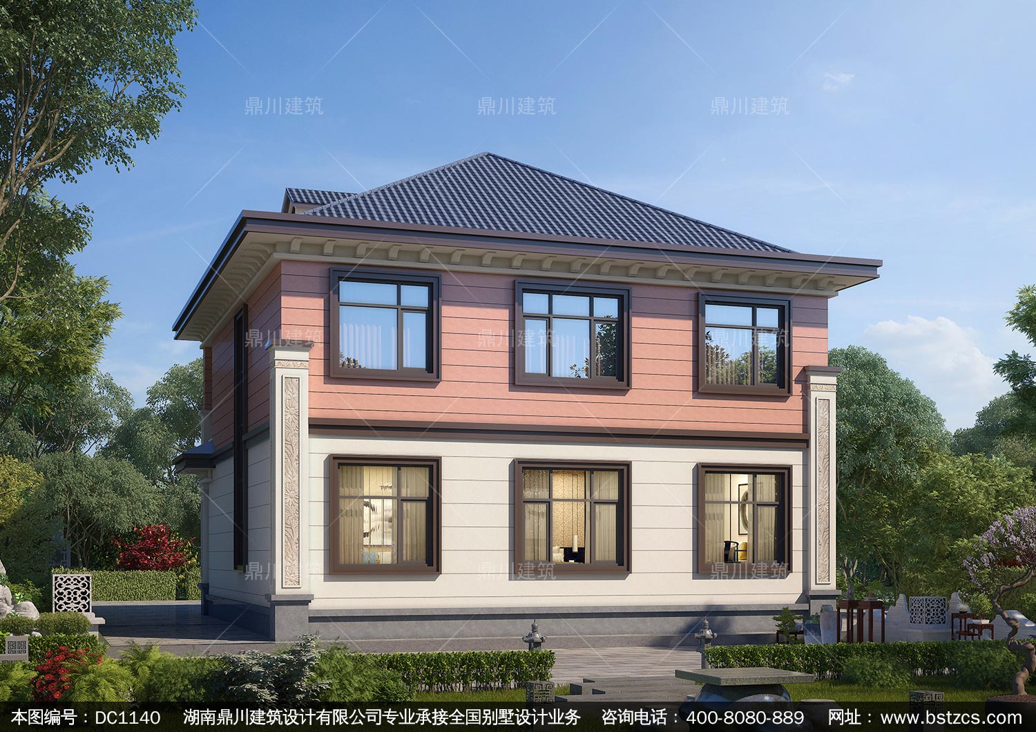 新中式二層帶陽臺別墅圖紙及效果圖_農村自建別墅設計,鼎川建筑