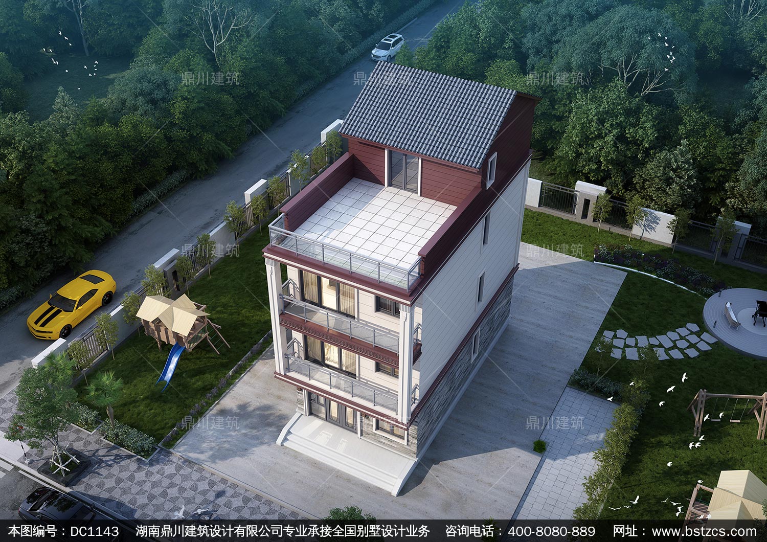 新中式三層帶露臺別墅圖紙及效果圖_新農村自建別墅設計,鼎川建筑